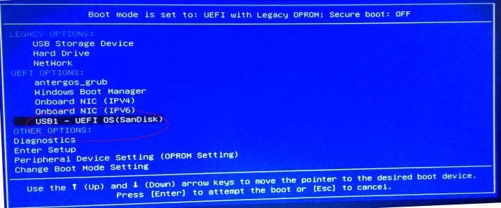 Ini adalah cara yang paling mudah,karena kamu tidak perlu masuk dan setting lewat BIOS/UEFI kamu cukup lihat menu yang tersedia saat komputer mu dinyalakan, perhatikan tombol apa yang perlu ditekan untuk masuk ke boot menu.Setiap merek menggunakan tombol yang berbeda jadi awasi benar-benar saat komputermu booting.